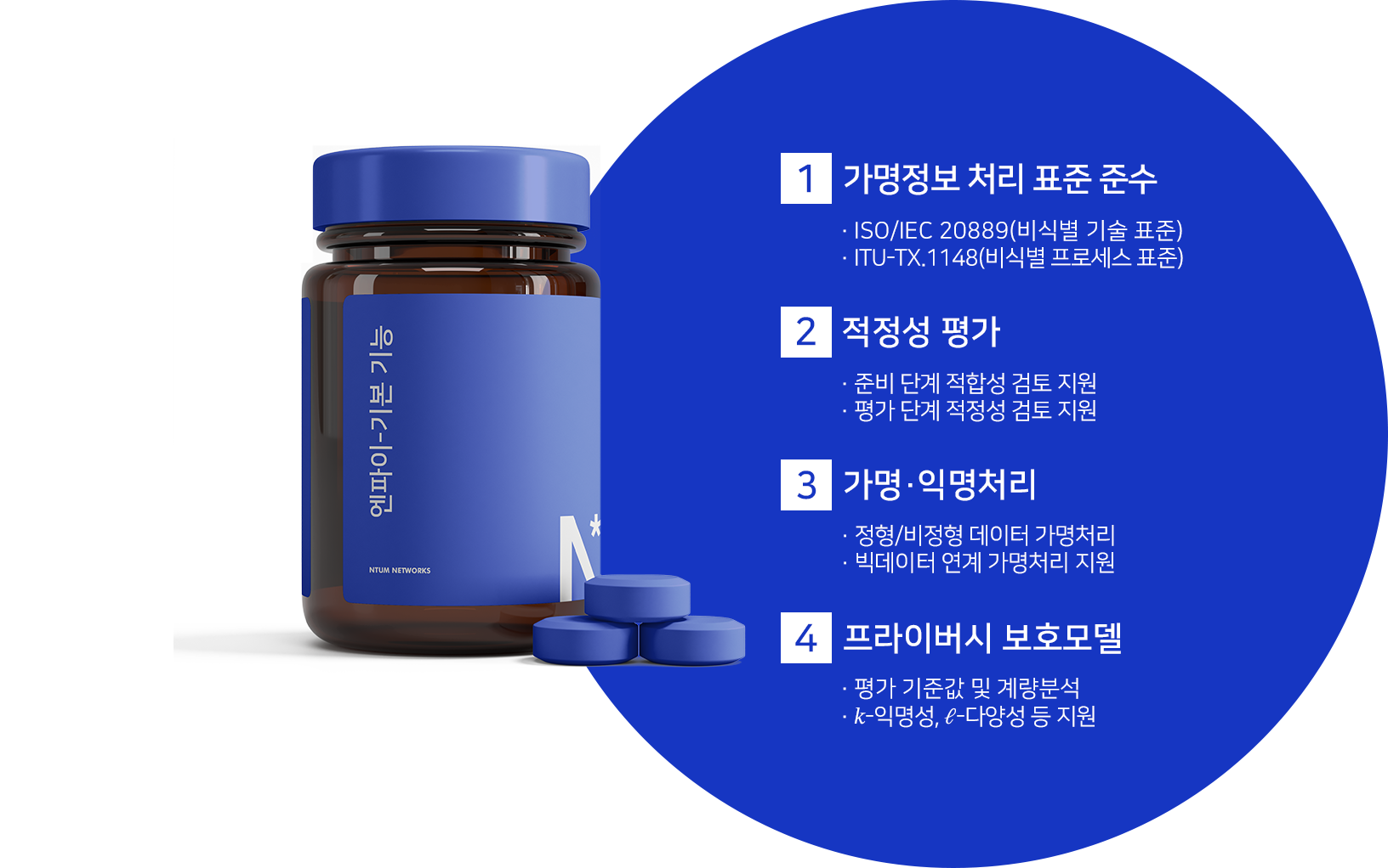 개인정보 가명·익명처리 / 가명정보 결합 솔루션 N-PIE(엔파이)는 가명·익명처리 관련 제도 및 기술 표준에 따라