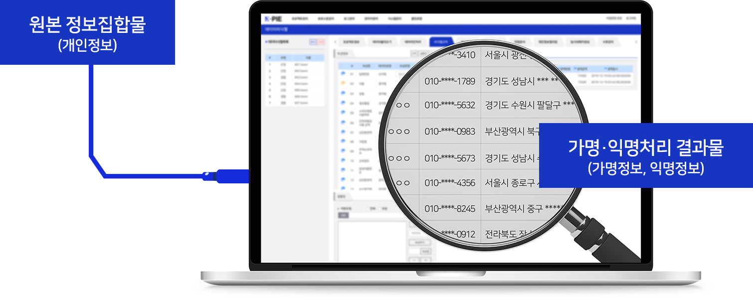 가명·익명처리 절차와 기술*을 제공하여 데이터의 안전한 활용을 지원합니다.